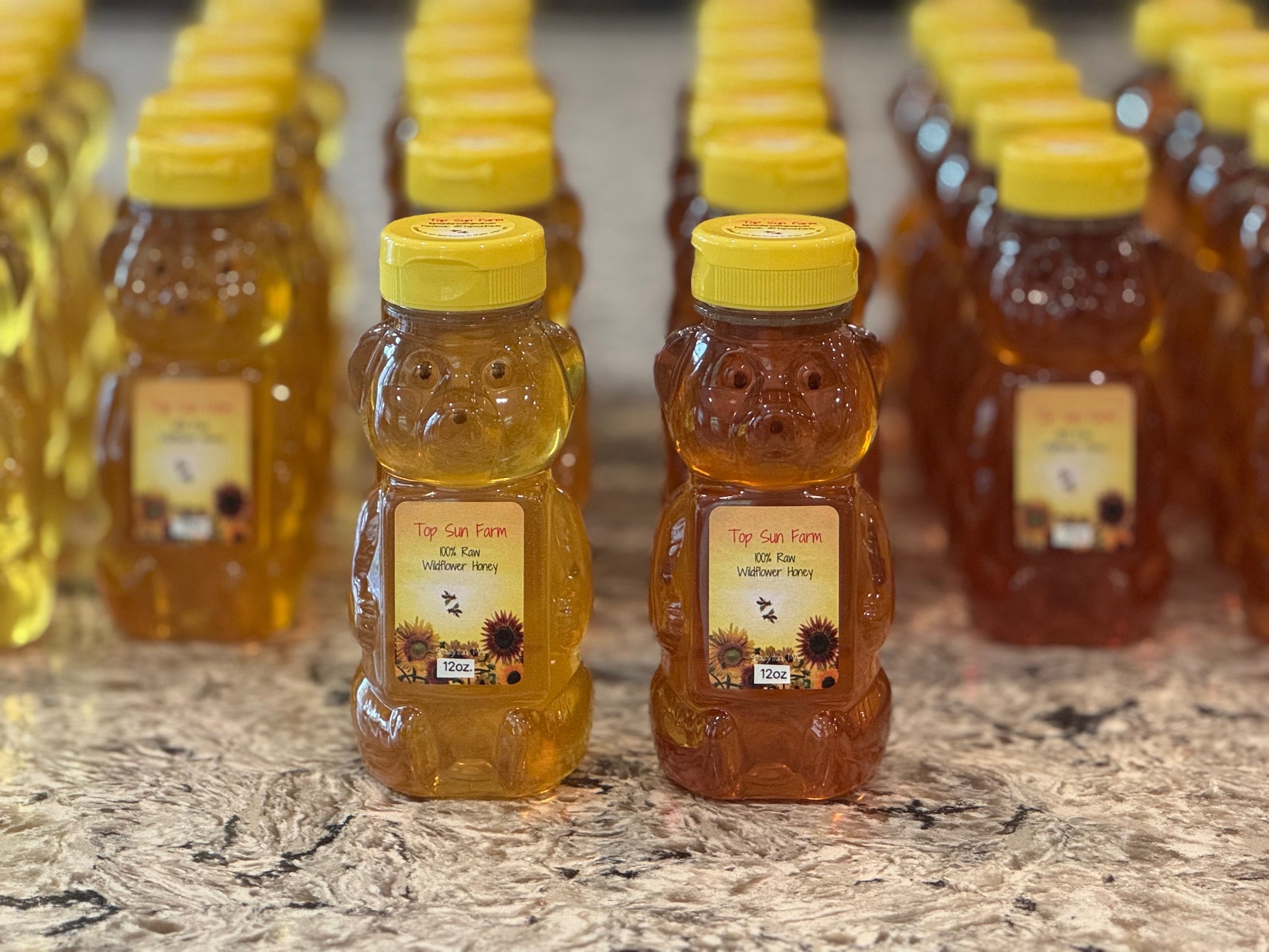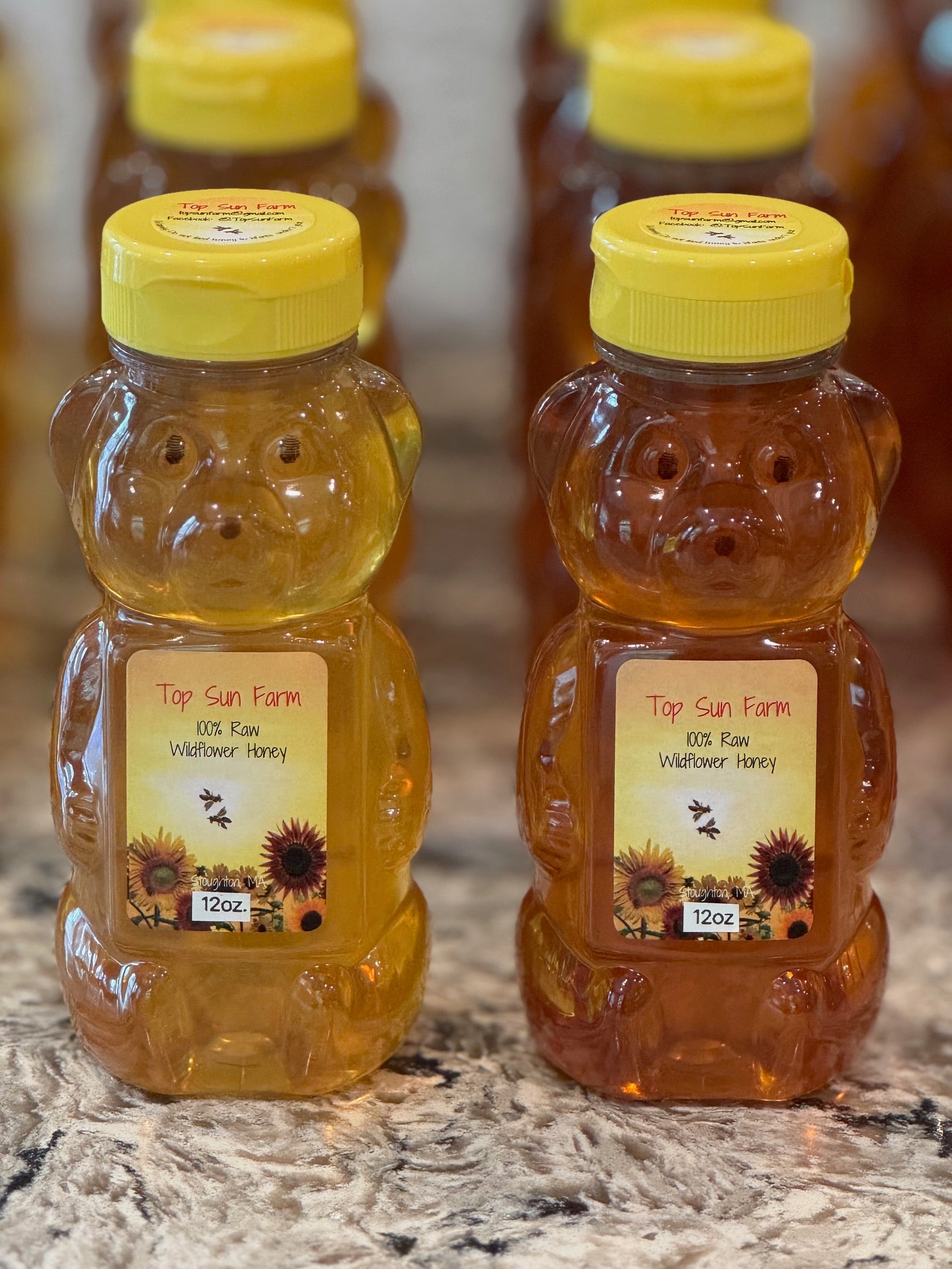 Experience 100% pure, local wildflower honey with our Honey Bear. Our honey is harvested directly from our hives. It is never heated or filtered. Raw honey has a diverse range of nutrients, including vitamins, antioxidants, and minerals, that are beneficial for your health and wellbeing. The taste, flavor, and color can vary depending on what the bees are foraging on at the time. Enjoy this local wildflower honey in your favorite recipes, drinks, or for its delicious taste alone.