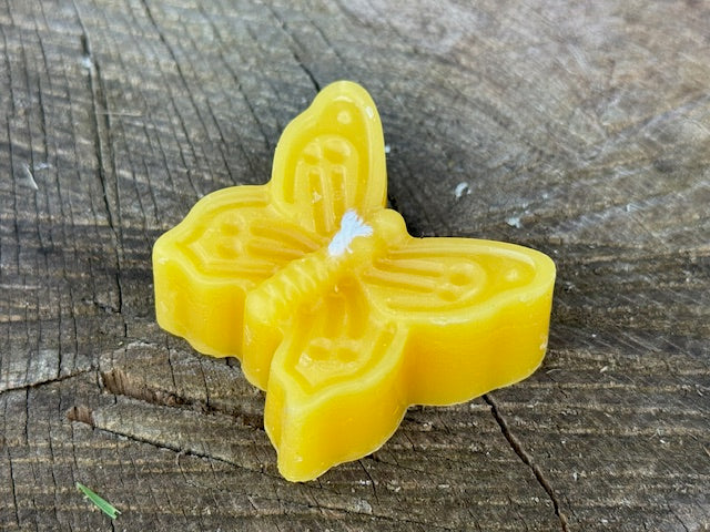 All beeswax is harvested directly from our own hives. We collect wax cappings from our honey extraction as well as honeycomb from the hives and render it ourselves. Wax is hand poured in mold.